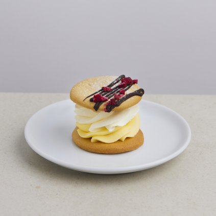 Vanilkový korpus (9ks alebo 16ks) s punčovou šťavou a jemnou malinovou ganache. Svieža a sladká kombinácia ovocnej chuti a punčovej arómy v každom kúsku.