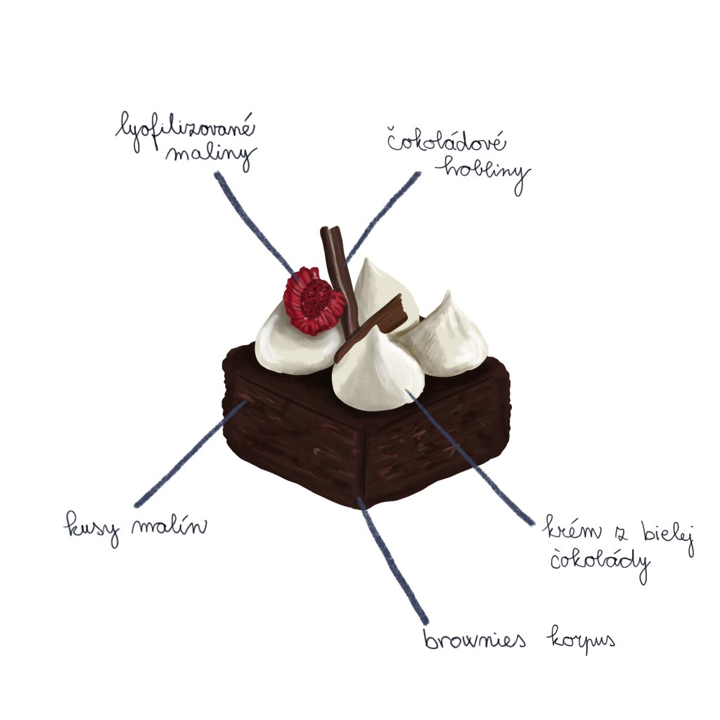 Šťavnaté čokoládové brownies (9ks alebo 16ks) s kúskami lesného ovocia a jemným krémom z bielej čokolády. Intenzívna chuť kakaa v spojení s ovocnou sviežosťou a krémovou ľahkosťou.