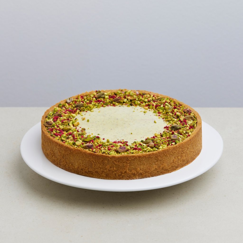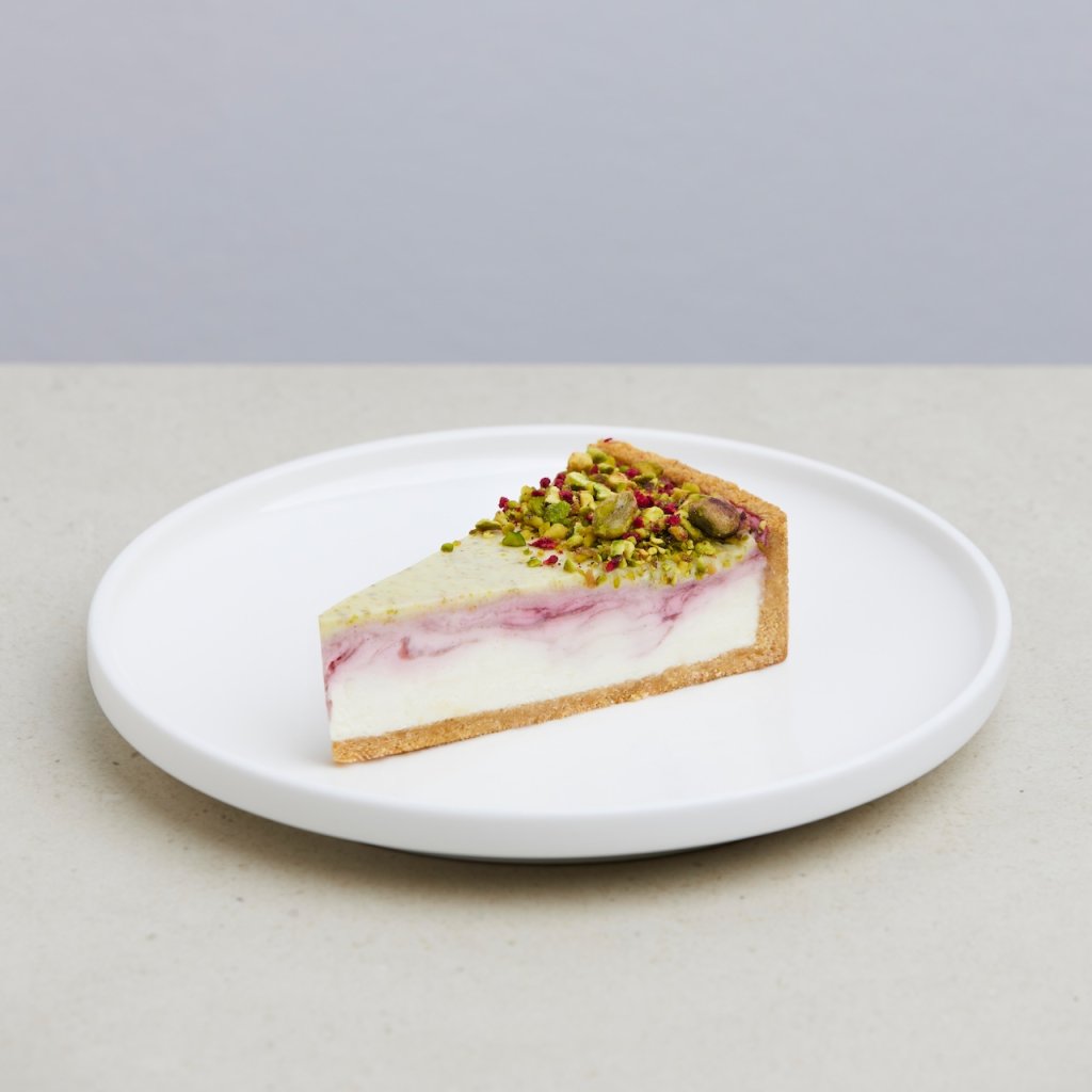 Cheesecake so sušienkovým korpusom, jemným malinovo-smotanovým krémom a bohatou pistáciovou ganache. Perfektná kombinácia ovocnej sviežosti a orechovej chuti v každom kúsku.