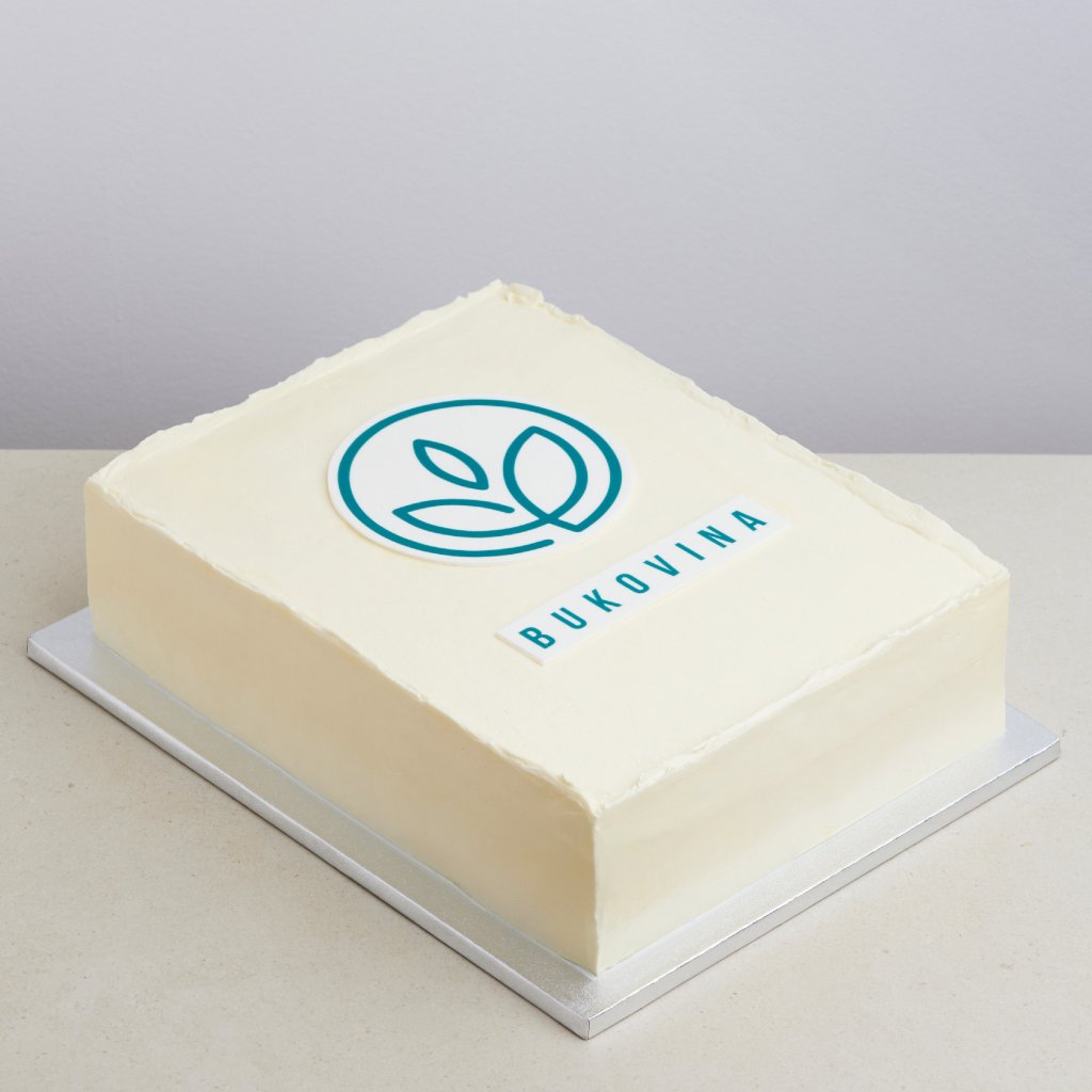 Firemná torta s logom Vašej značky (40×30 cm / približne 50 porcií). Reprezentatívna torta s Vaším logom, ideálna na firemné oslavy a výročia. Spojenie elegantného dizajnu, poctivej chuti a veľkorysej porcie.