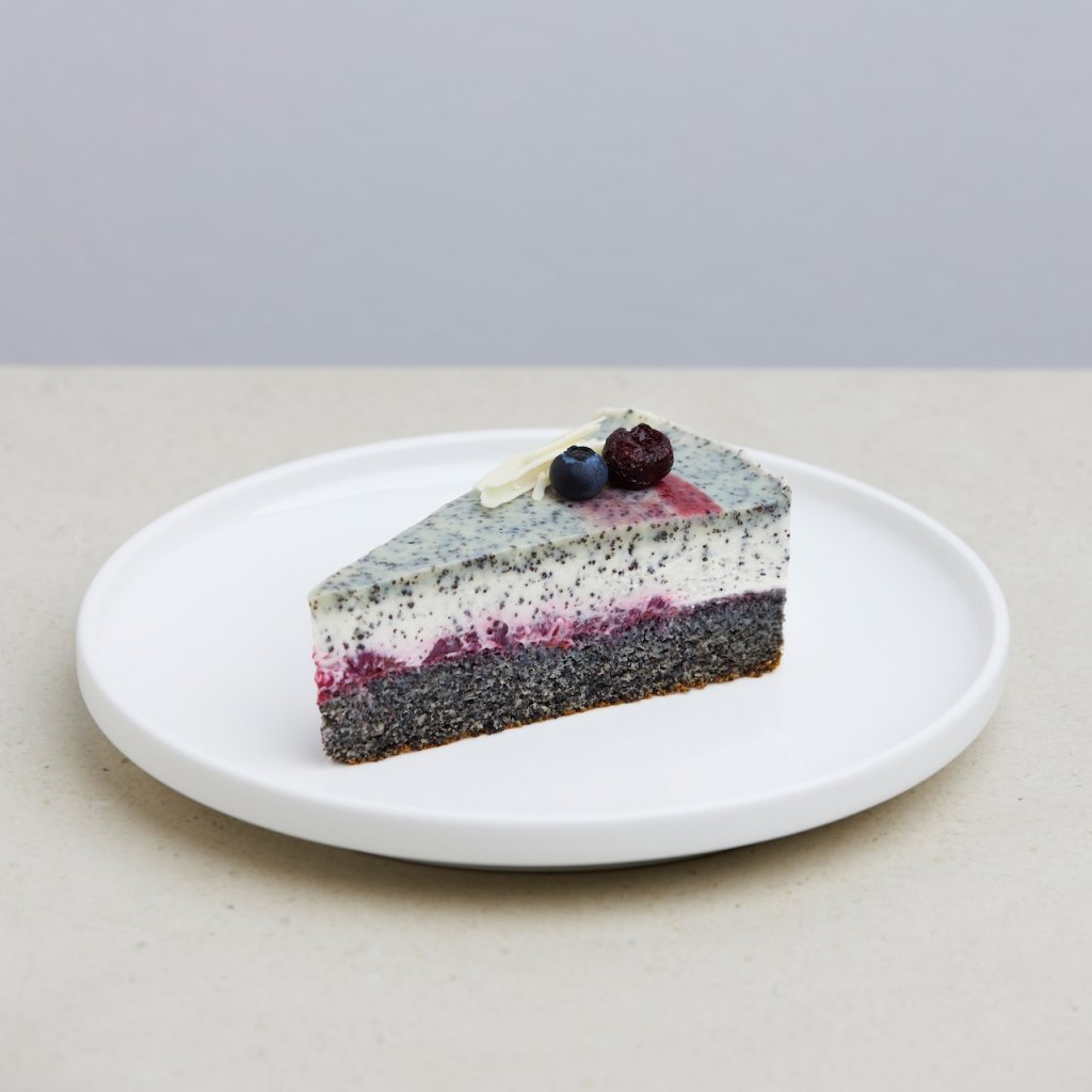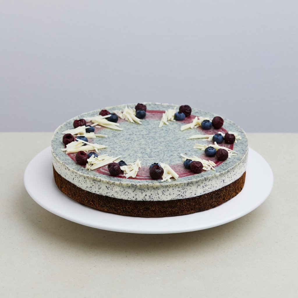 Bezlepkový makový korpus s jemným makovým krémom, sladkými višňami a bohatou makovou ganache. Delikátna torta plná ovocnej chuti, ideálna pre milovníkov maku.
