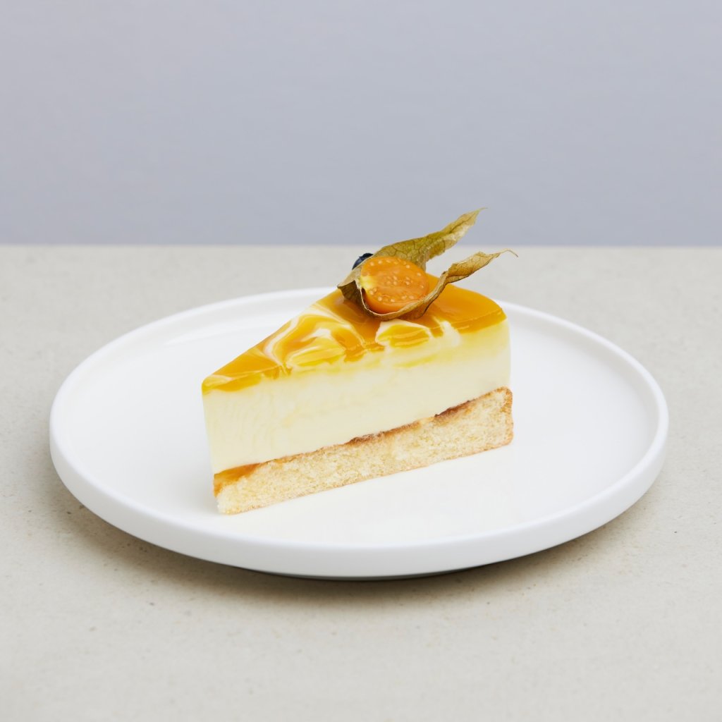 Marakuja prináša jemne kyslastý tón, ktorý krásne vyvažuje sladkosť vanilkového cesta a ľahkosť krému. Každý kúsok je ako dúšok leta – ideálny na oslavy, garden party či svieži záver slávnostného menu.