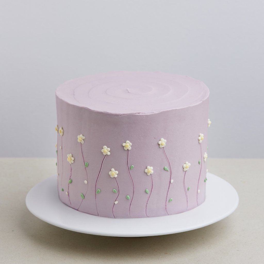 Dámska narodeninová torta so štruktúrovaným obtretím a kvetinovou dekoráciou