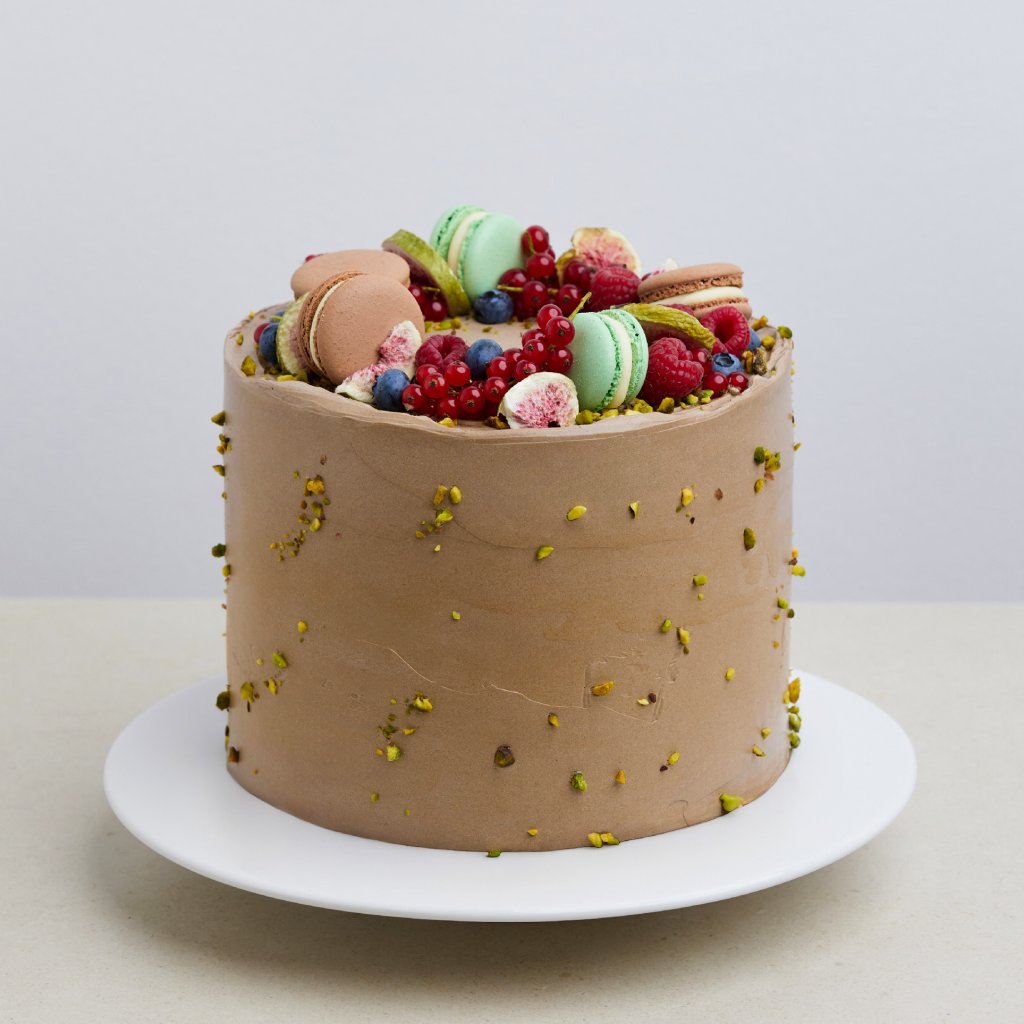 Bohatá, výrazná a do detailu premyslená – táto pánska narodeninová torta je stvorená pre milovníkov komplexných chutí a elegantného vzhľadu. Zdobená vrstvou chrumkavých orieškov, jemnými makrónkami a čerstvým ovocím vytvára dokonalú rovnováhu medzi sladkosťou, sviežosťou a textúrou.