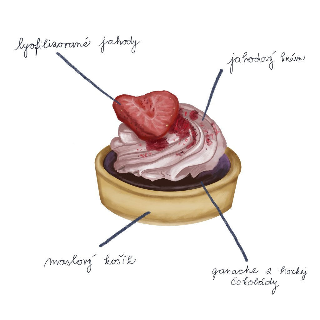 Krehká na povrchu, bohatá vo vnútri – táto tartaletka je chuťová symfónia, v ktorej hrá hlavnú rolu intenzívna čokoládová ganache a svieži jahodový krém. Základ tvorí sušienkové cesto upečené do zlatista, ktoré sa pri každom súste rozpadne a uvoľní cestu dvom dokonale zladeným náplniam.