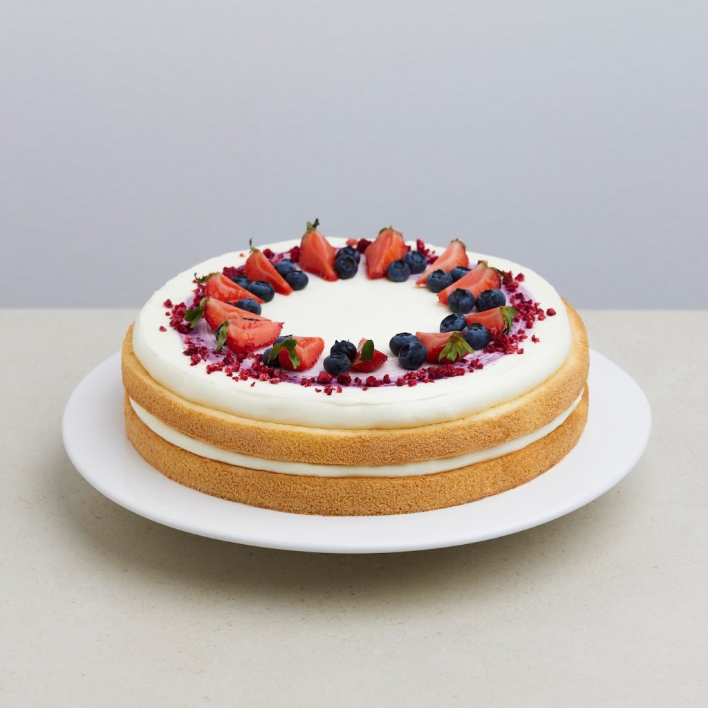 Jemný vanilkový korpus s krémovým mascarpone a čerstvým ovocím. Ľahká a svieža torta, ktorá poteší milovníkov klasických a prirodzených chutí.